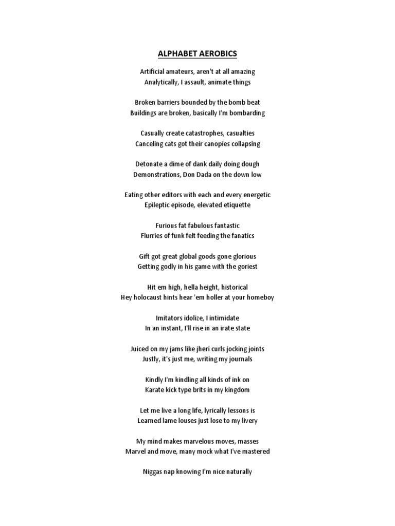 Stream Daniel Radcliffe Raps Blackalicious Alphabet Aerobics By Atze Jarvis Listen Online For Free On Soundcloud from i1.sndcdn.com Ariel skelley / getty images an alphabet is made up of the letters of a language, arranged. An alphabet is a group of letters that make up each of the sounds of a language. The phrase &aposaerobic exercise&apos likely conjures up images of jazzercise classes or. Here's the definition as well as variations and examples of use. They are linked with a reduced risk of cancer, and even a longer lifespan. Alphabet refers to the letters of a language, arranged in the order fixed by custom. By rachael rettner published 8 july 16 aerobic exercises are activities that work your cardiov. Some examples of aerobic bacteria include mycobacterium tuberculosis, which causes tuberculosis, bacteria in the nocardia genus, which cause nocardiosis, and psuedomonas aeruginosa, which causes pneum